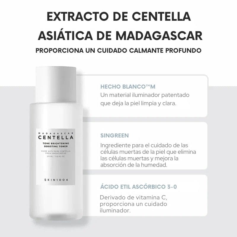 Tónico iluminador que despierta la piel tras la limpieza. Con Centella de Madagascar, niacinamida y ácido hialurónico, calma, hidrata y favorece un tono más uniforme mientras suaviza la textura. Deja un acabado fresco y elástico, ideal para pieles opacas o con falta de luminosidad.